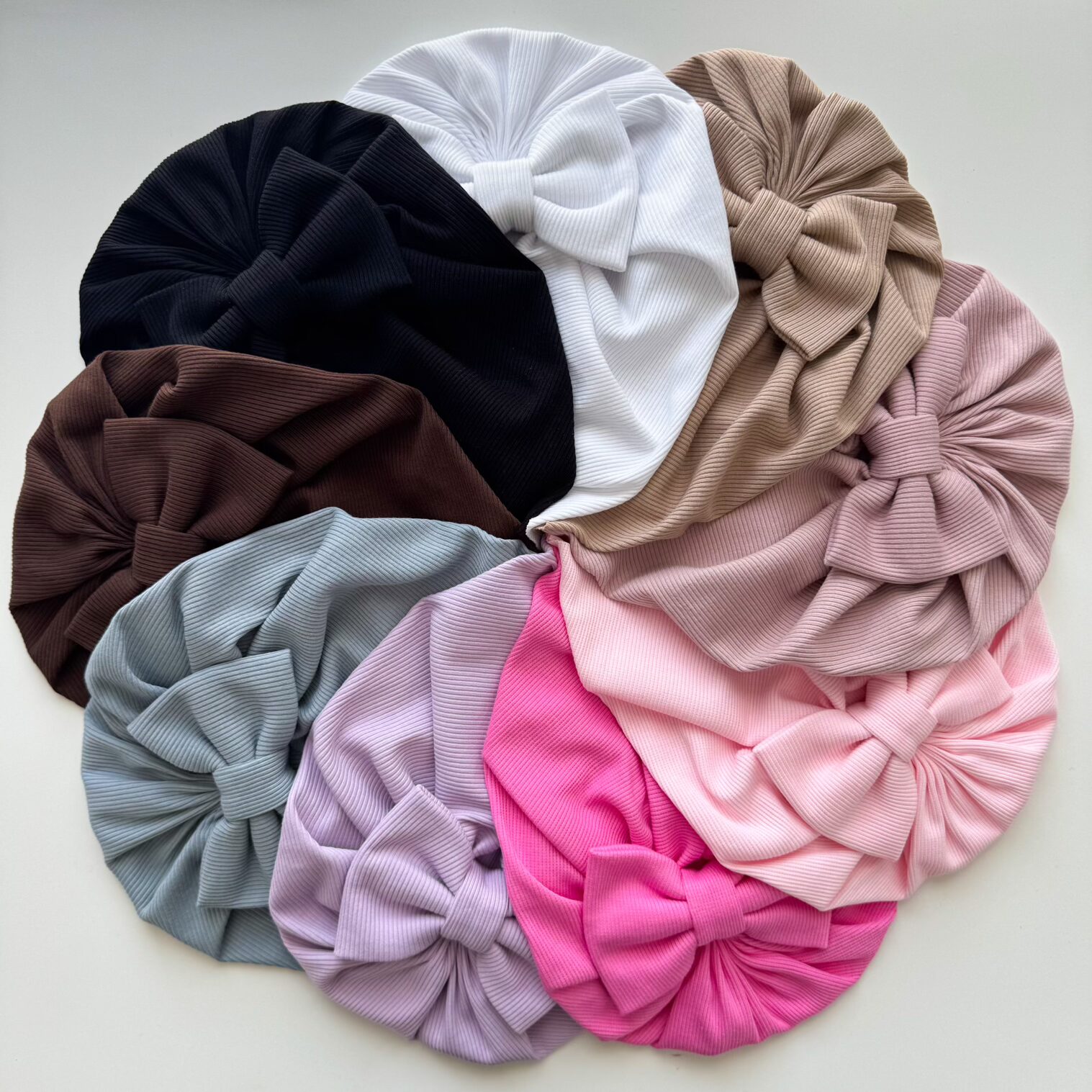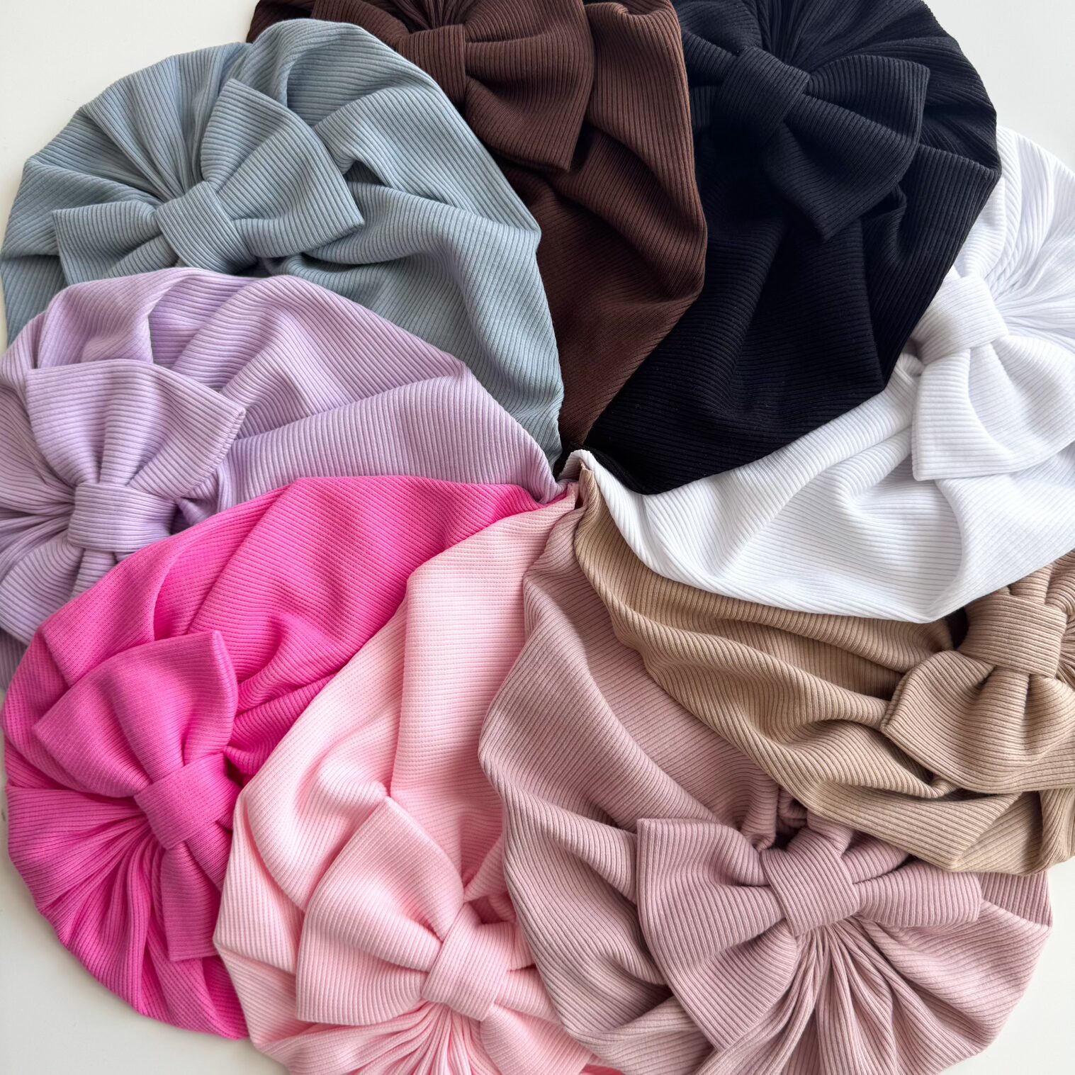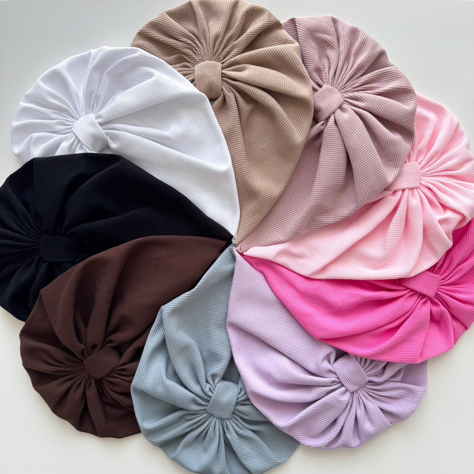 Domov Turbany Turbany JEDNOFAREBNÉ Turban s mašľou 2v1 – tenší rebrovaný úplet – Slovenská výroba